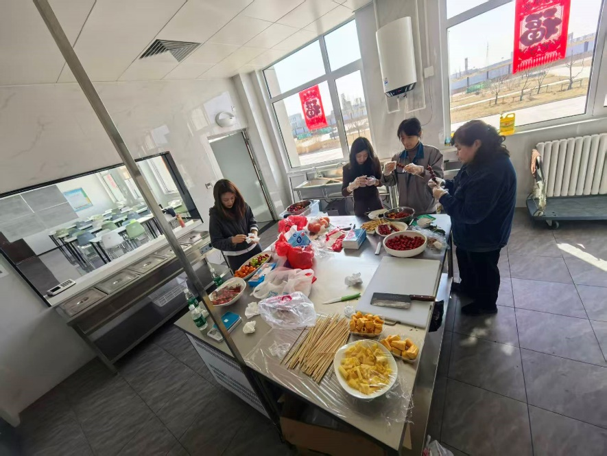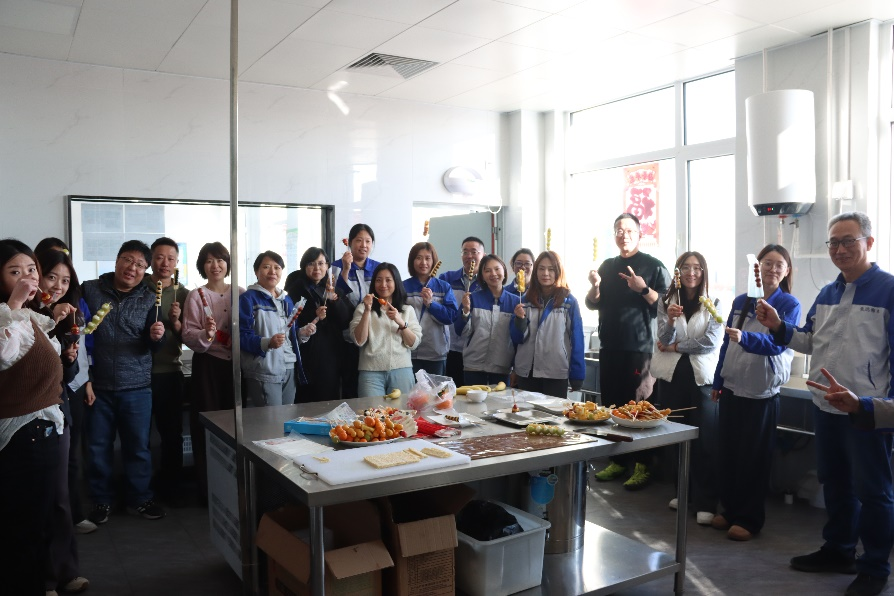 运动会落幕之后,温馨的氛围并未散去。行政部精心准备了现场制作糖葫芦的环节,新鲜饱满的山楂、晶莹剔透的糖衣,还有各类搭配的水果整齐摆放,工具一应俱全。女神们兴致盎然地围在一起,亲手挑选水果、相互交流制作技巧、分享创作心得,现场欢声笑语不断,弥漫清甜的糖香。